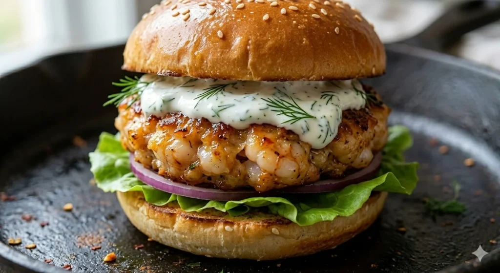 Want a burger night that feels light, fresh, and totally different? These tender, golden shrimp burgers are the answer. Made with coarsely chopped shrimp, crispy panko, and simple seasonings, they crisp up beautifully in a skillet in under 10 minutes.