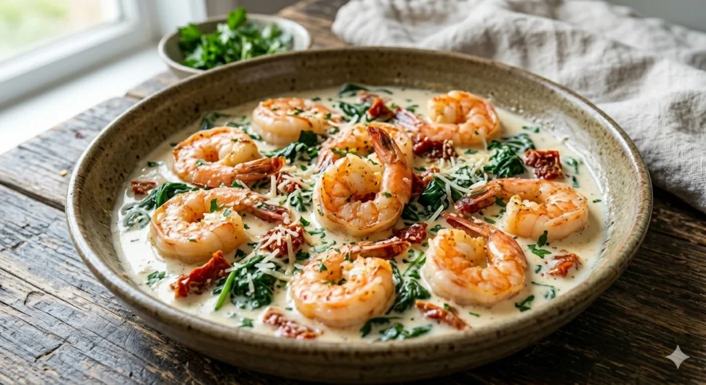 Meet your new favorite one-pot wonder. This creamy Tuscan shrimp is deeply comforting but still holds onto a summery lightness thanks to tart sun-dried tomatoes and fresh baby spinach. The acidity of the tomatoes cuts perfectly through the rich cream, bringing a little taste of the Italian countryside to your kitchen.